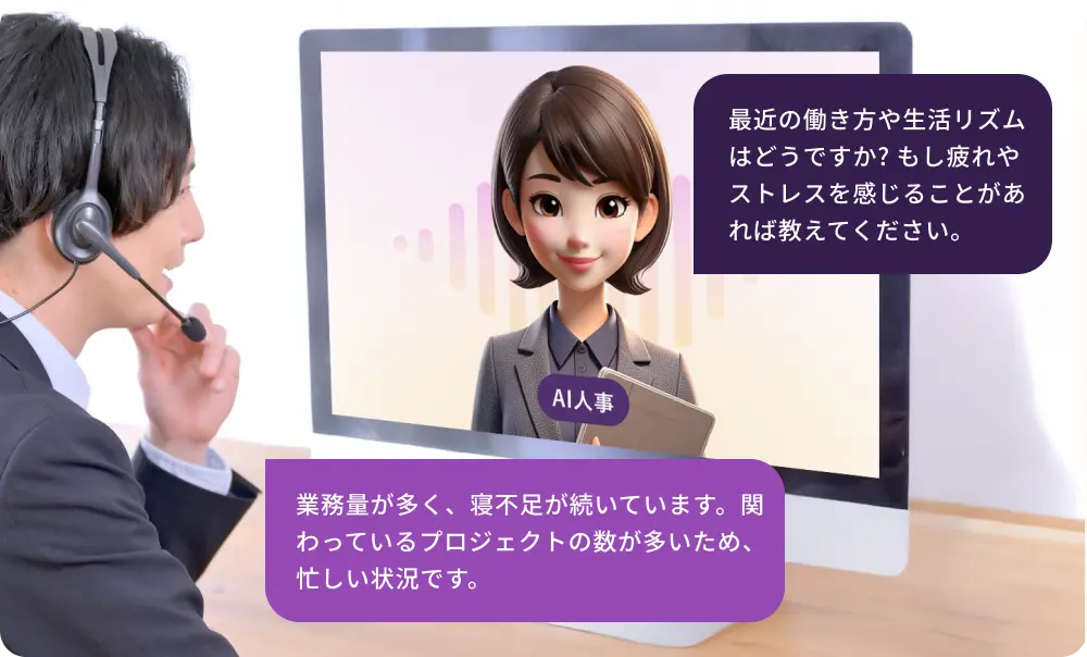 誰にも気を遣わず、業務の不安や弱音をAIに相談。AIだからこそ話しやすい環境で本音の感情を整理し、前向きな行動へと繋げます。