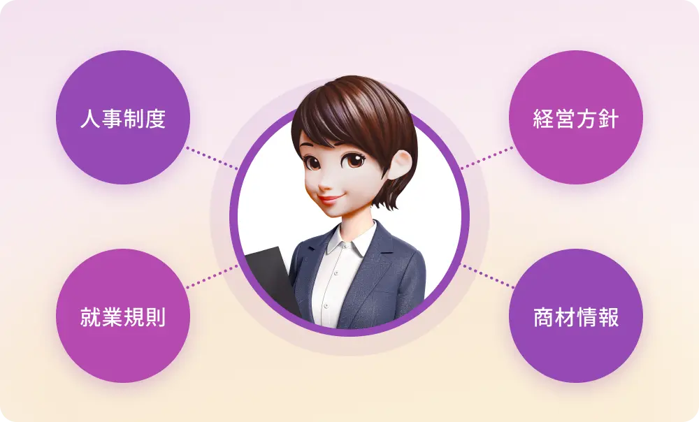 企業ごとのマニュアルや製品情報、社内ルールといった独自の知識をAIに学習させることができます。