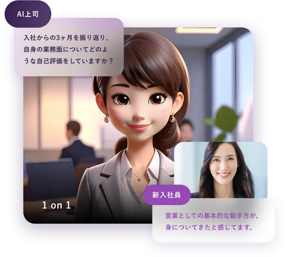 用途に合わせて様々な場面でご活用できます。上司役としての1on1から、人事視点でのキャリア面談まで。企業ごとにあらゆる面談をでき、社員から適切なタイミングで適切な情報を拾うことができるようになります。