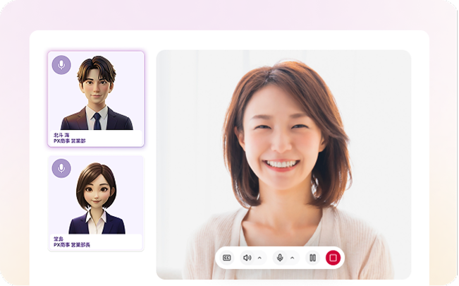 PeopleX AIロープレは職種・業種の縛りなく、様々なシーンでご利用いただけます。管理職の面談練習や人事職の面接練習、英語でのプレゼン練習など、その活用範囲は無限大です。