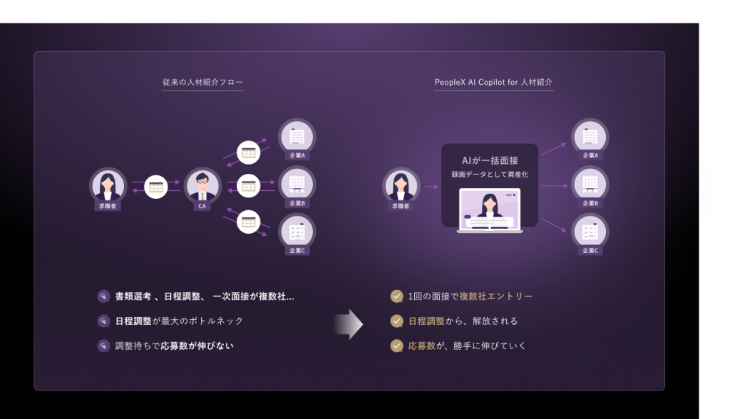 PeopleX、人材紹介のあらゆる業務をAIが引き受ける、新たなAIエージェントサービスの提供を開始/「PeopleX AI Copilot」の第一弾としての「PeopleX AI Copilot for 人材紹介」
