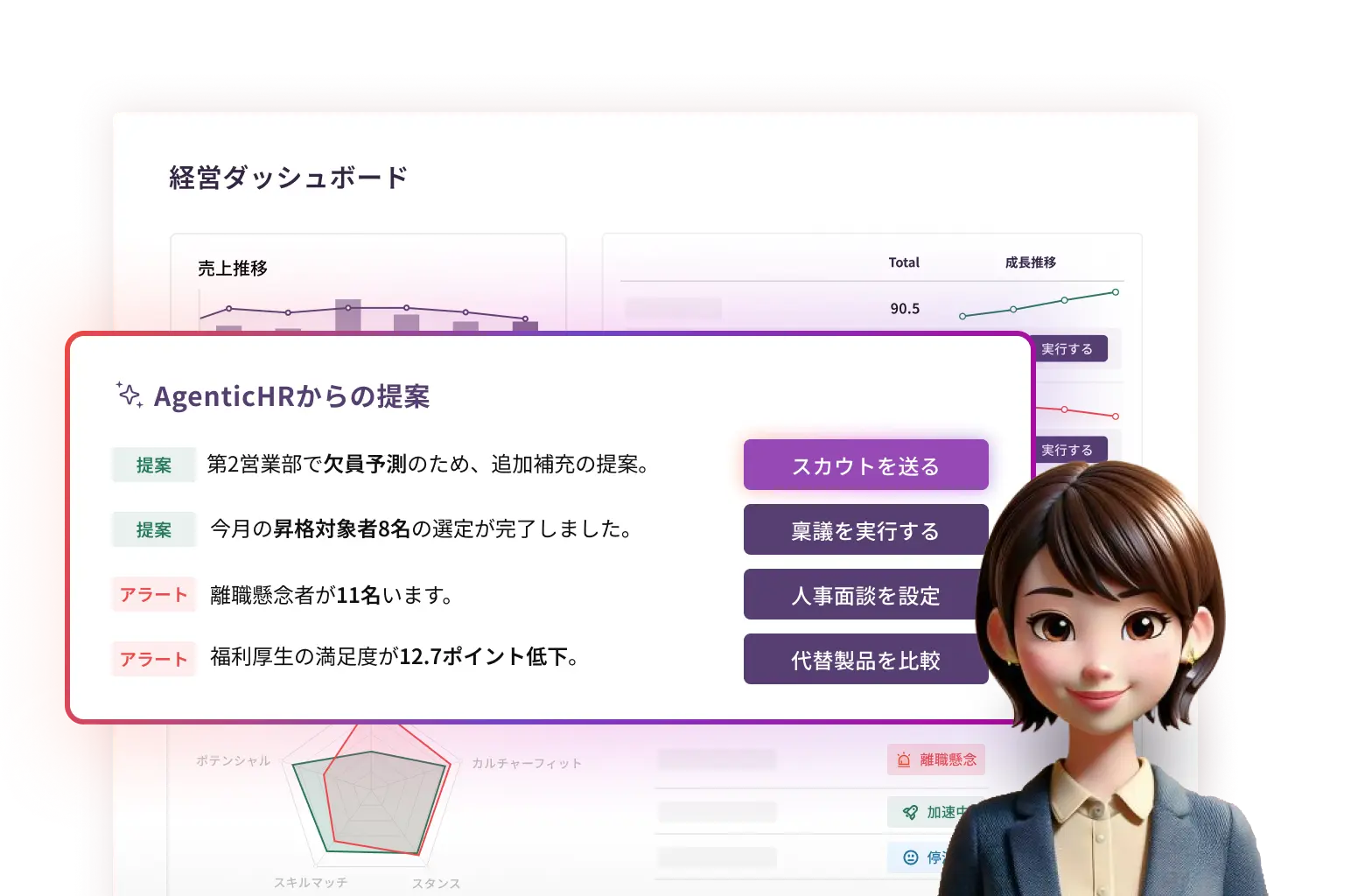 サポートが必要な人材に対してはアラートを出し、具体的な支援策まで提案します。